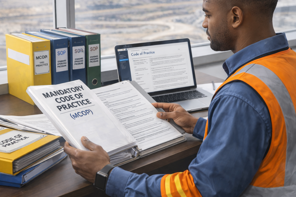 Compilation, review and update of Mandatory Codes of Practice (MCOPs) and related Standard Operating Procedures (SOPs) in line with DMRE Mandatory COP Guidelines.